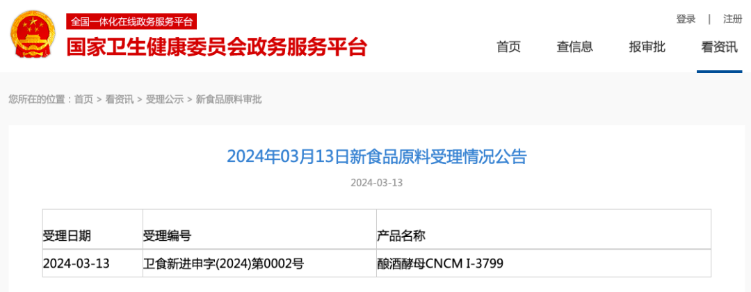 新食品原料 | 國(guó)家衛(wèi)健委發(fā)布釀酒酵母CNCM I-3799受理公告