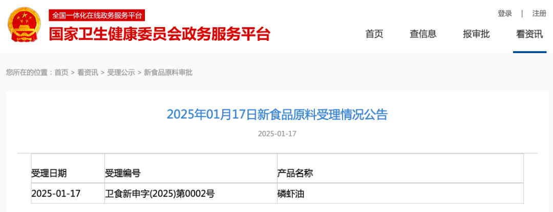 受理編號:衛(wèi)食新申字(2025)第0002號