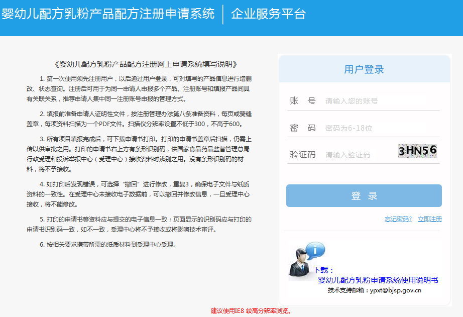 嬰幼兒配方乳粉產(chǎn)品配方注冊申請系統(tǒng):http://?http://yp.zybh.gov.cn/yezcww/login/loginAction!login.dhtml